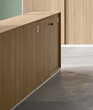 - Vlakke melamine achterzijde, geschikt om vrij in de ruimte te plaatsen