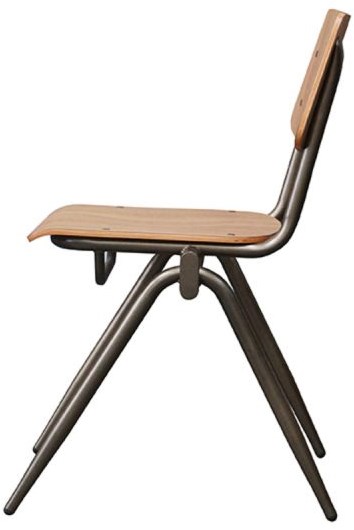 Deze unieke variant op de klassieke houten schoolstoel is een bijzondere toevoeging aan iedere kantine of kantoorruimte. De kantine stoel heeft een tijdloos ontwerp. Deze bijzondere uitvoering in walnoten hout met een goudkleurig metalen onderstel, combineert zowel stijl als praktisch gemak. Doordat de stoelen stapelbaar zijn kun je ze gemakkelijk opbergen en ruimte creëren. De houten zitting van op elkaar geperste lagen hout is gemakkelijk schoon te maken, net als het metalen frame. De combinatie van hout en metaal zorgt voor een minimalistische, industriële uitstraling. De robuuste look van deze eetkamerstoel maakt hem ideaal voor moderne, industriële én Scandinavische kantines.