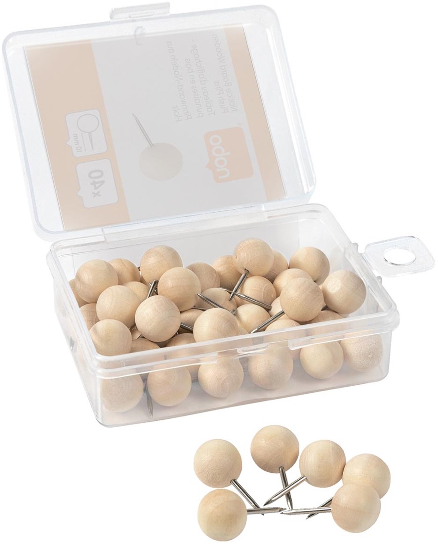 Stel een vraag over Nobo prikbordspelden met houten kop, doosje met 40 stuks