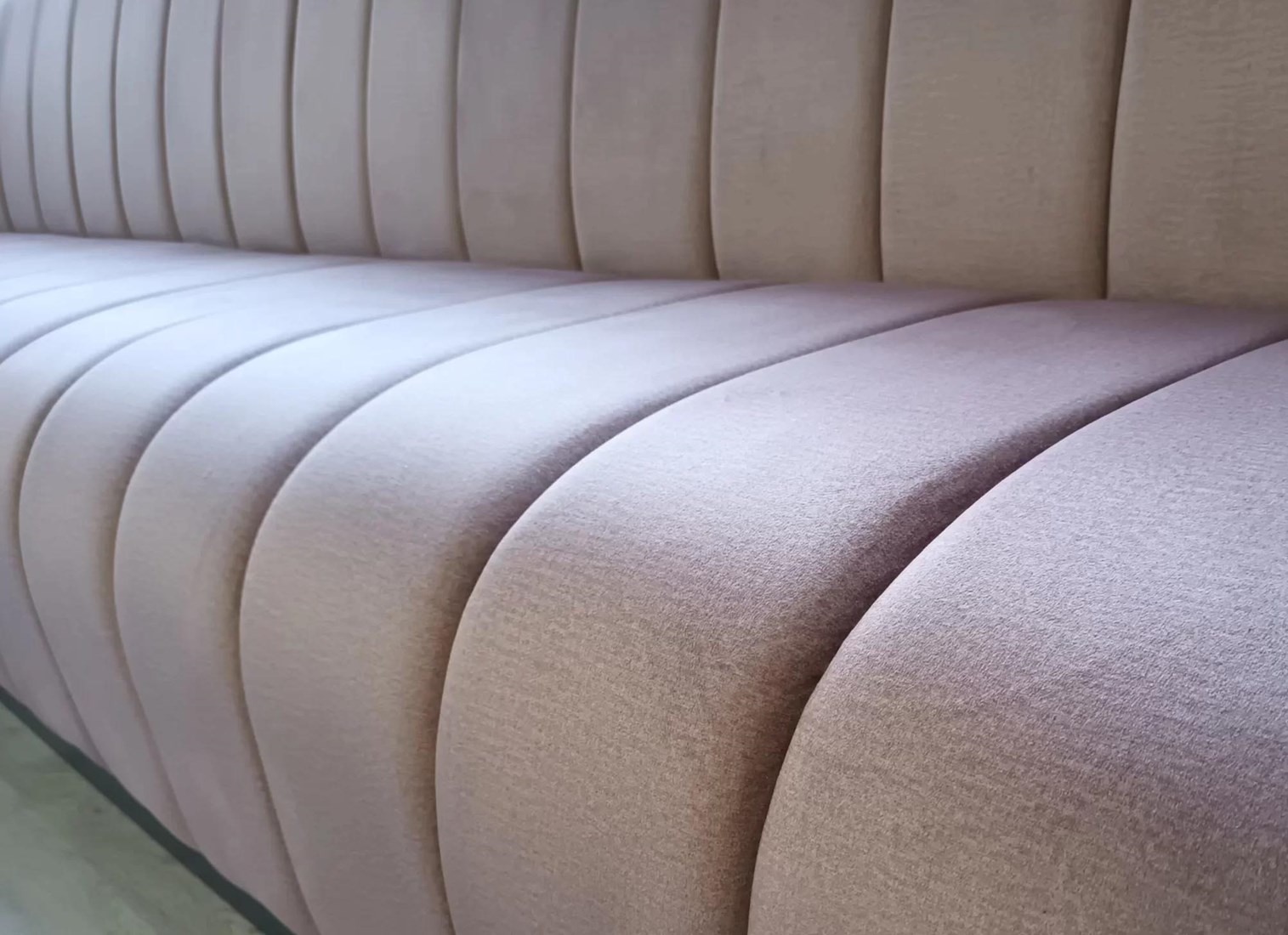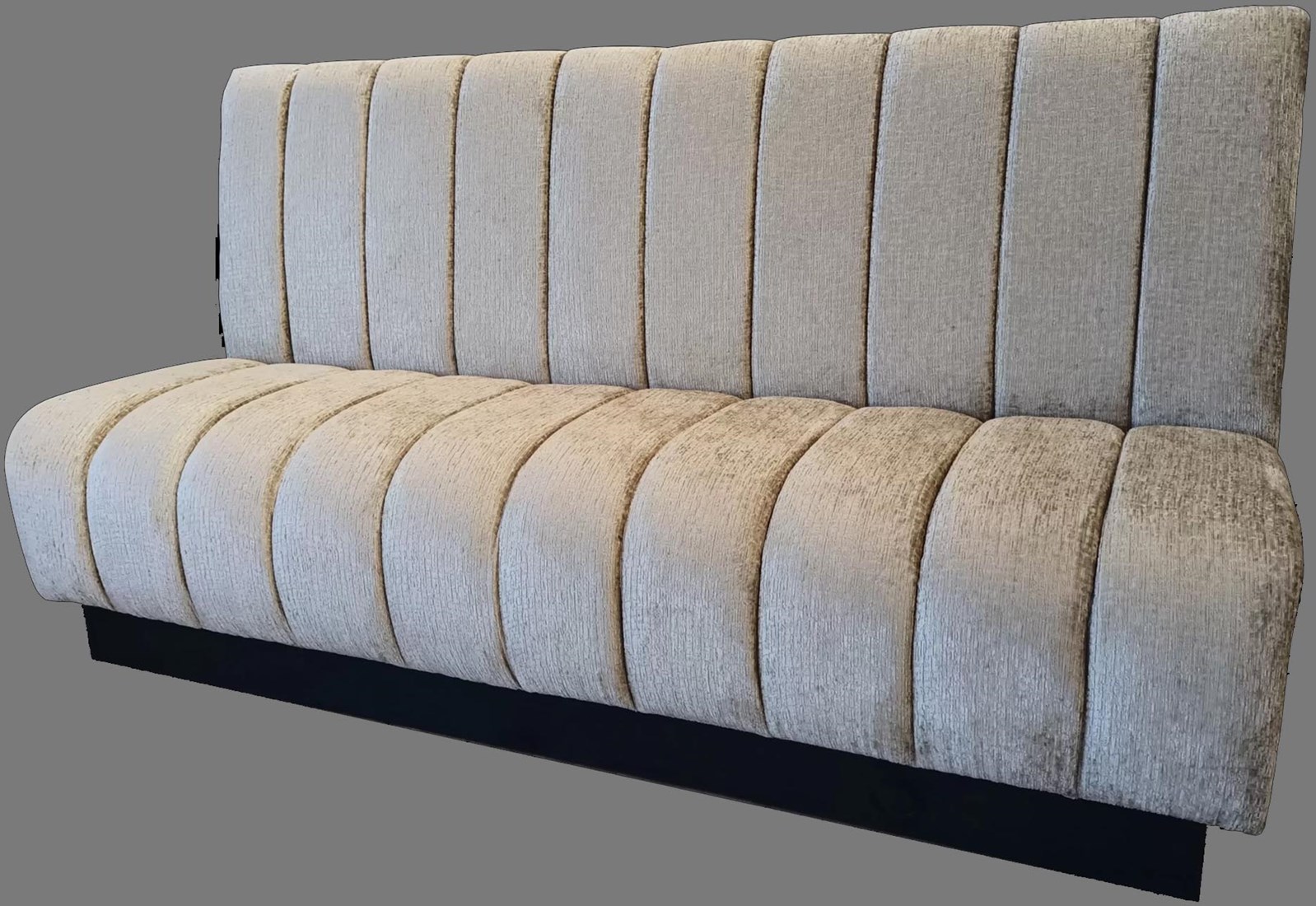 Deze luxe bank met hoge rugleuning past perfect in een kantine inrichting, horeca omgeving, als eettafel bank of als comfortabele wandbank in een spreekruimte of chillruimte op kantoor. Deze hoge bank combineert een luxe uitstraling met optimaal zitcomfort met banen van 20cm gecanneleerd gestoffeerd in zowel de rugleuning als de ziting. De extra dikke schuimvulling en de ronding bij de knieholte zorgen voor een ontspannen zithouding, waardoor deze hoge bank ideaal is voor intensief dagelijks gebruik in horeca, kantine, chillruimte of als eettafel bank. De bank staat op een onderbak van 15cm hoog.