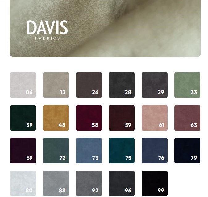 - Kleuren in luxe Velvet stof van Davis fabrics.