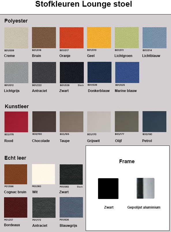 Deze luxe wachtkamer stoel is verkrijgbaar in meerdere kleuren en stofferingen. Van wolvilt tot leer en kunstleer. Bekijk de uitgebreide kleurenkaart als jouw keuze niet bij de snelkeuzes staat. Er is veel mogelijk en we helpen je graag persoonlijk om de stoel te vinden die in jouw bedrijfsruimte past. We zijn bereikbaar via naar het nummer 085-0160140 of het contactformulier.