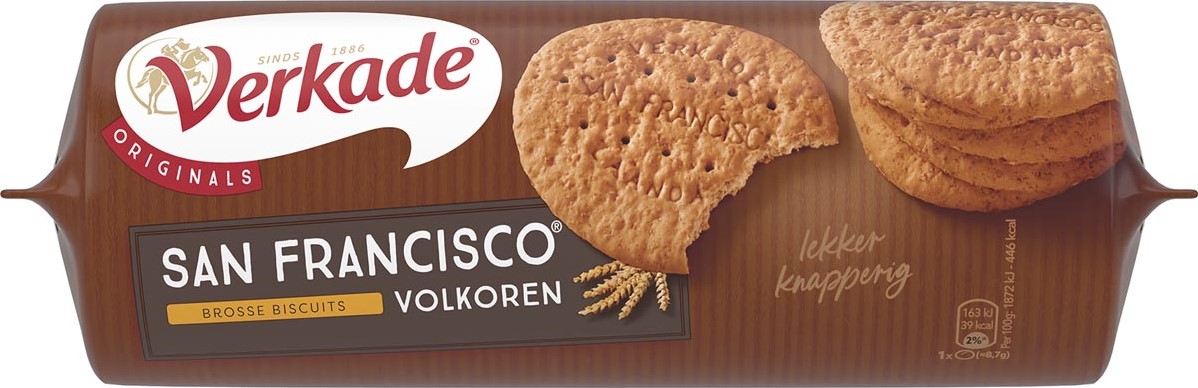 Specificaties Verkade San Francisco koekjes volkoren, pak van 250 gram