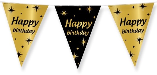 Deze Classy party flags zijn de perfecte versiering om er een geslaagd verjaardagsfeestje van te maken! Deze 10 meter lange vlaggenlijn is aan beide kanten bedrukt.