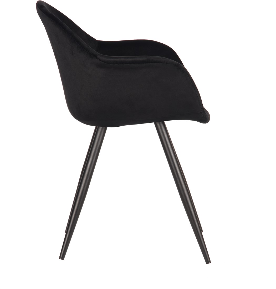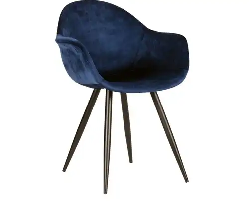 Een elegante eetkamerstoel voorzien van prachtige vormen, materialen en contrastenZwart metalen frame met licht uitlopende poten Een hip fluwelen juweeltje met een trendy klassieke twistGeschikt voor kantine inrichting, vergaderruimtes, ontvangstruimtesMateriaal: Fluweel Leverbaar in de kleuren Blauw, Rust, Roze, Oker, Army Green, Zwart, Bordeaux, Zand, Grijs Past in veel verschillende interieur stijlen Maximaal belastbaar: 100 kg 2 jaar garantie