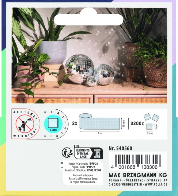 Mozaieksteentjes Folia 10x10mm glas pastel assorti