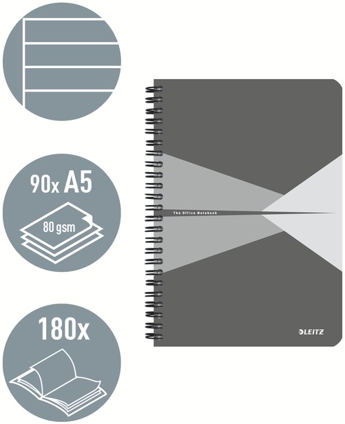 Artikelomschrijving Notitieboek Leitz Office A5 lijn 180 pagina's 80gr grijs grijs