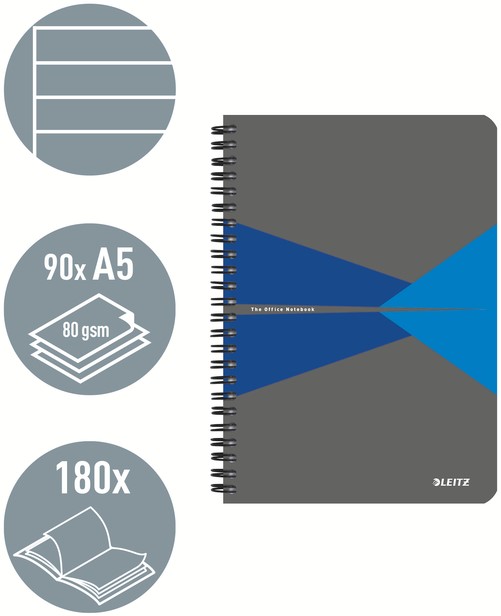 Artikelomschrijving Notitieboek Leitz Office A5 lijn 180 pagina's 80gr grijs blauw