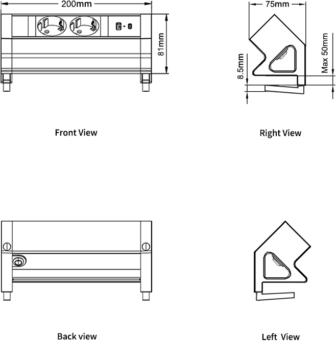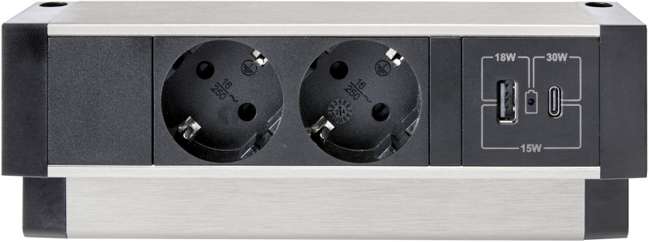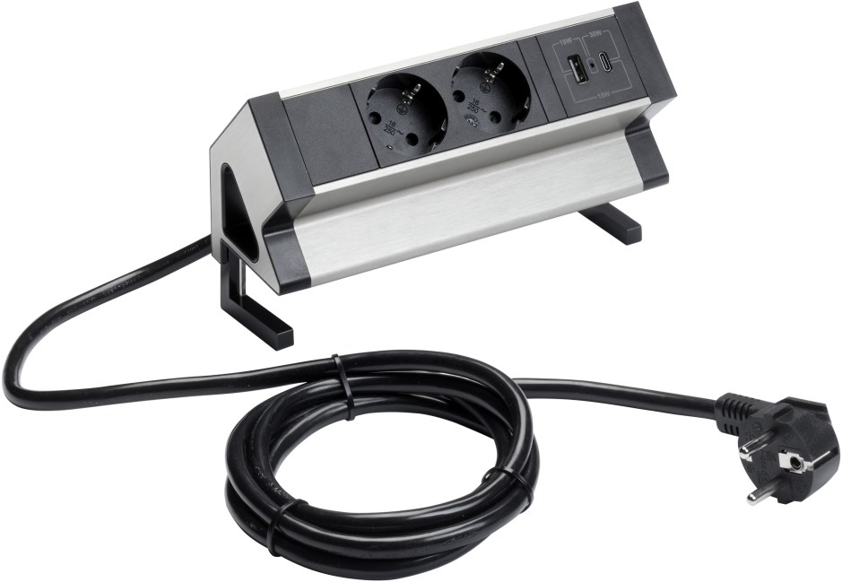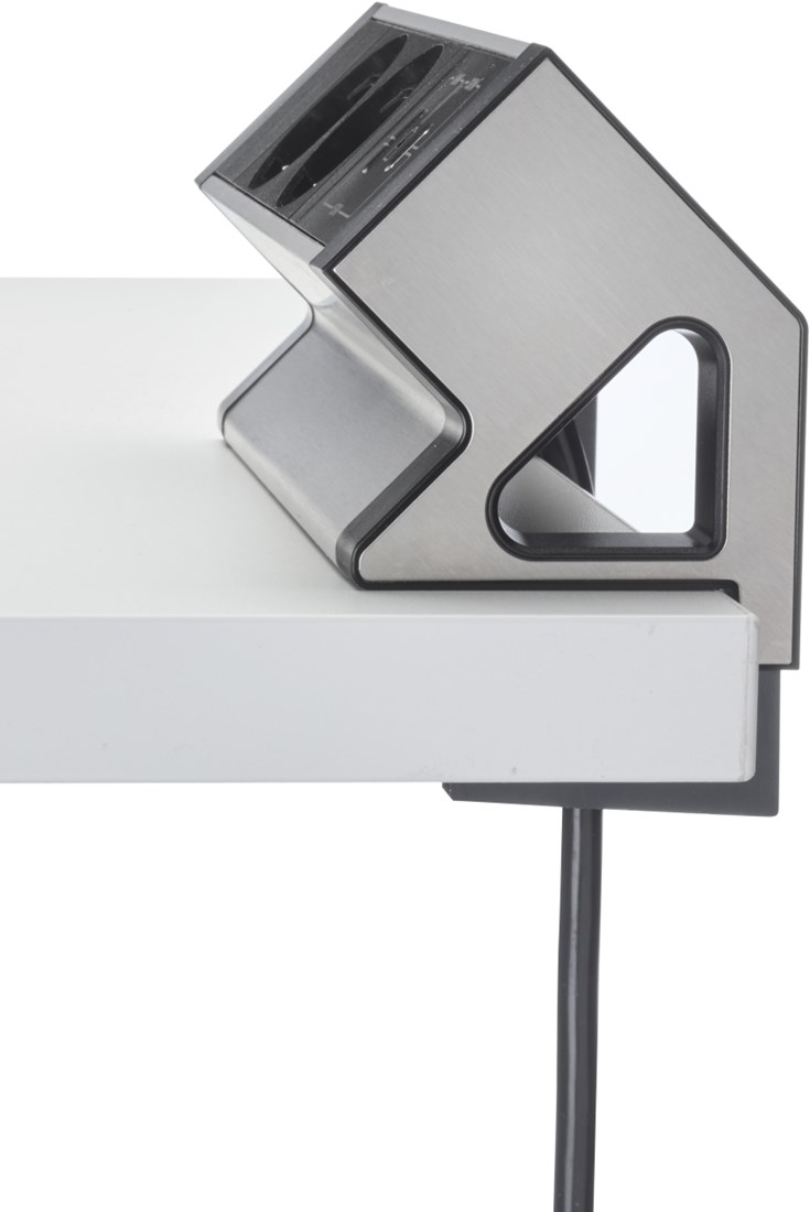 De opbouw stekkerdoos is uitgevoerd in zwart met een aluminium afwerking en past daardoor goed bij moderne bureaus en zit sta bureaus. Door de bladklem bevestig je de stekkerdoos eenvoudig aan de rand van het bureaublad, zonder te boren. Ideaal voor kantoren, thuiswerkplekken en flexibele werkplekken.