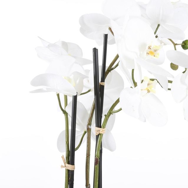 Stel een vraag over Kunstplant Mica Phalaenopsis orchideeën wit in plastic pot 79x51cm