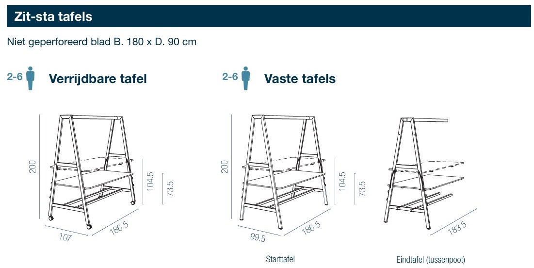 - Verkrijgbaar in vaste uitvoering of verrijdbare versie