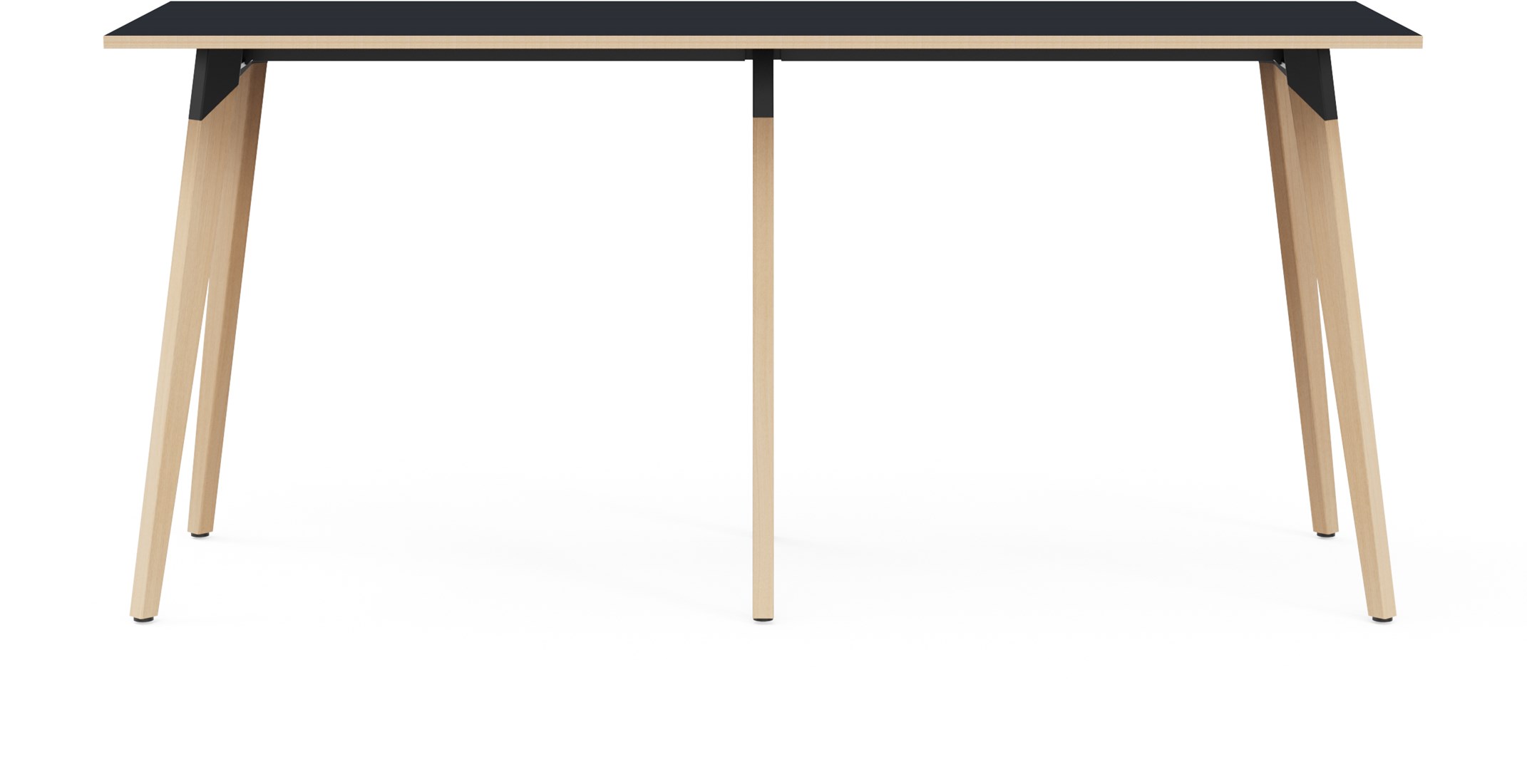 De massief beuken poten zijn voorzien van metalen accenten bovenaan de poten, wat zorgt voor een herkenbare en verfijnde uitstraling binnen de Evasion serie. Het tafelblad is afgewerkt met een sterk laminaat oppervlak dat bestand is tegen schokken, vocht, hitte, vlekken en krassen. Dankzij deze duurzame afwerking is de tafel geschikt voor intensief dagelijks gebruik in zakelijke omgevingen.