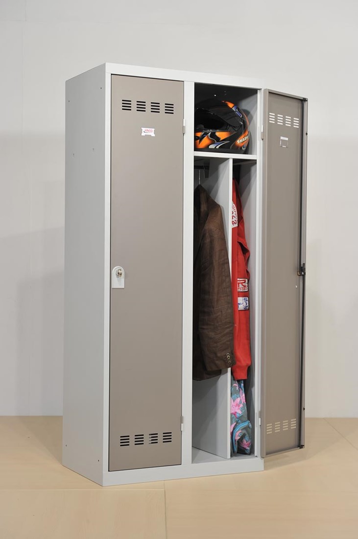 Met verticale scheidingswand Met hangslotvoorziening ( hangslot niet inbegrepen) Geproduceerd in Frankrijk Kleur kast: lichtgrijs Kleur deur: lichtgrijs Andere sloten en andere kleuren mogelijk op bestelling Certificaat: NF Environnement, NF OEC