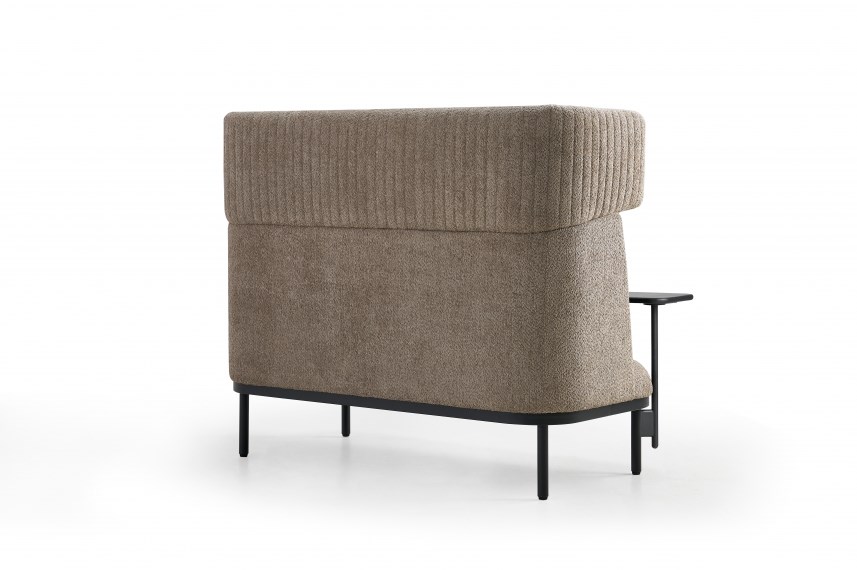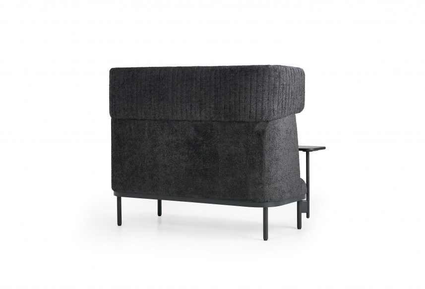 De tweepersoons bank is uitgevoerd met een duurzaam zwart gelakt stalen frame en hoogwaardige schuimvulling voor optimaal zitcomfort. De luxe teddy stof geeft de bank een warme, zachte uitstraling en is tegelijkertijd uiterst slijtvast. Hierdoor is deze akoestische bank geschikt voor intensief zakelijk gebruik.