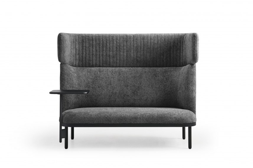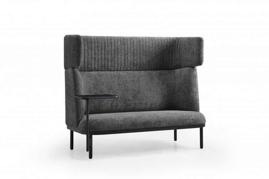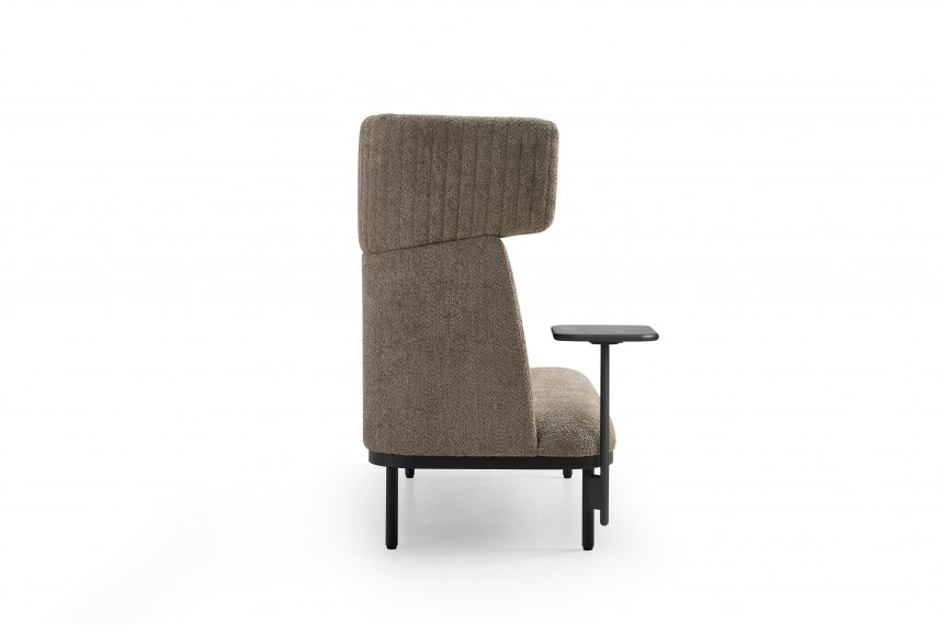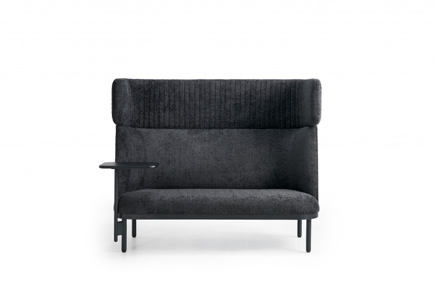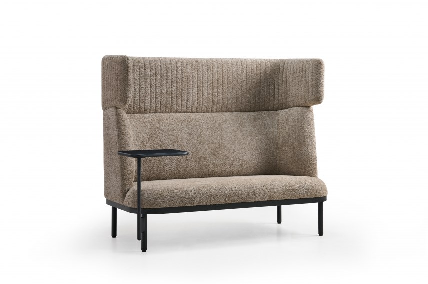 Voor extra functionaliteit is de bank optioneel uit te breiden met een aan het frame gekoppeld tafeltje van 22 mm dik zwart essenhout of eikenhout. Praktisch voor het plaatsen van een laptop, documenten of een kop koffie tijdens korte werk- of wachtmomenten.