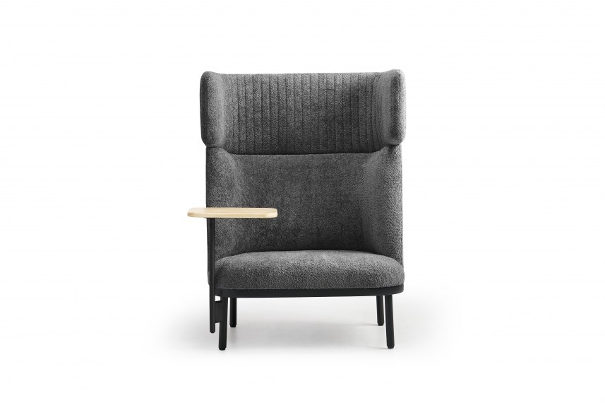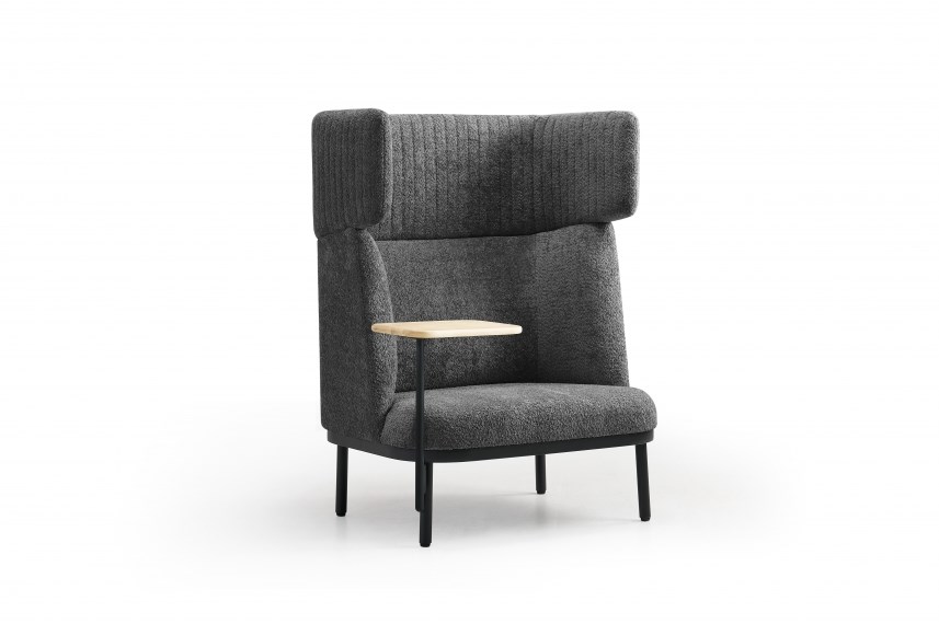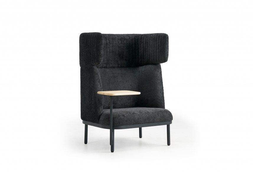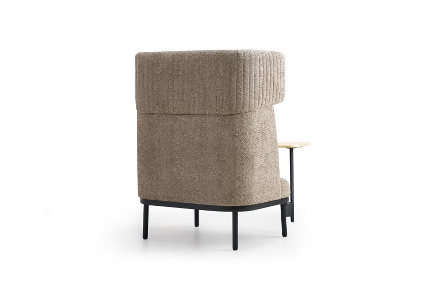 Voor extra functionaliteit is de bank optioneel uit te breiden met een aan het frame gekoppeld tafeltje van 22 mm dik zwart essenhout of eikenhout. Ideaal voor het plaatsen van een laptop, notities of een kop koffie tijdens korte werk- of wachtmomenten.