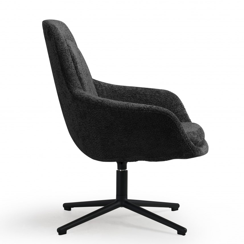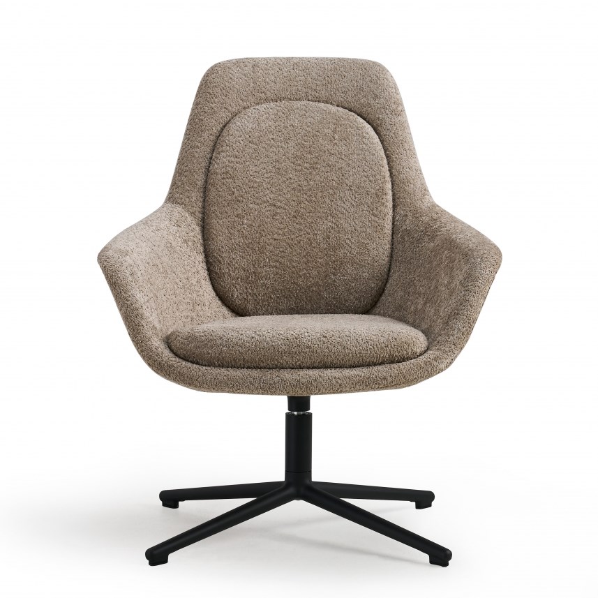 De fauteuil staat op een stabiele draaibare stervoet van zwart gelakt staal waardoor gebruikers eenvoudig kunnen draaien tijdens gesprekken of overlegmomenten. Het hoogwaardige gevormde schuim zorgt voor langdurig zitcomfort terwijl de luxe teddy stoffering een warme en professionele uitstraling geeft.