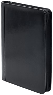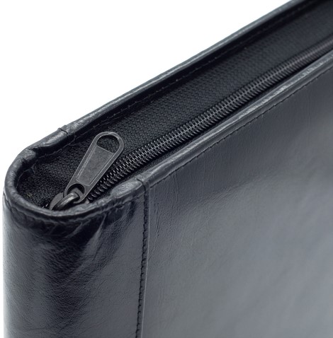 Schrijfmap van der Spek A4 4-rings 25mm O-mechaniek + rits rundleer met nerf zwart