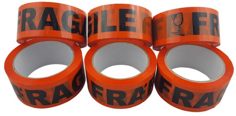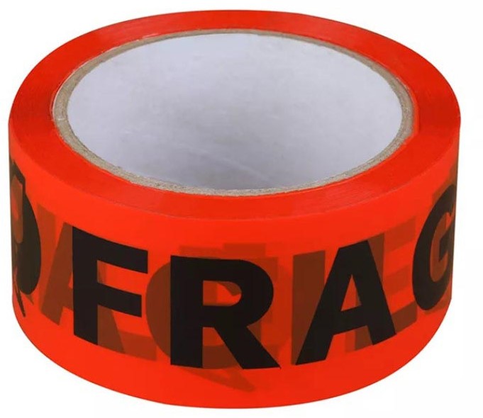 Rillprint verpakkingstape PP: fragile, ft 48 mm x 66 m, oranje