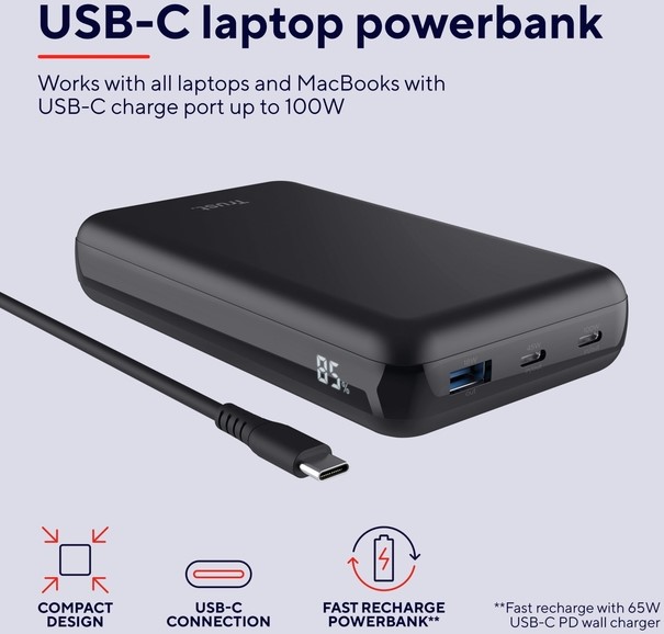 Artikelomschrijving Powerbank Trust Laro laptop 100W