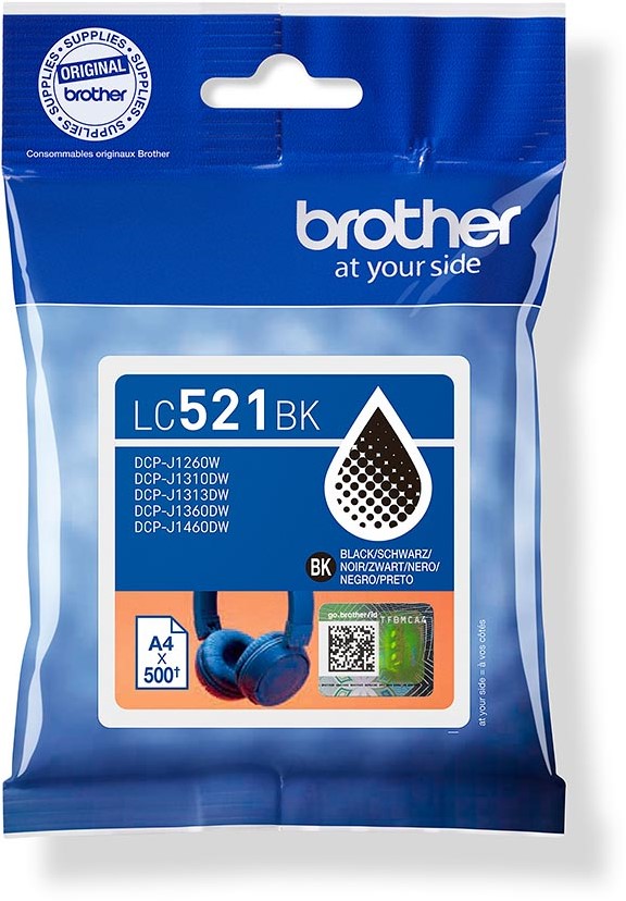 Artikelomschrijving Brother inktcartridge, 500 pagina's, OEM LC-521BK, zwart