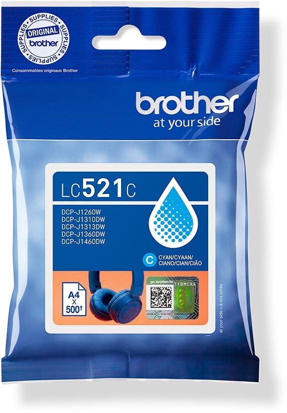 Artikelomschrijving Brother inktcartridge, 500 pagina's, OEM LC-521C, cyaan