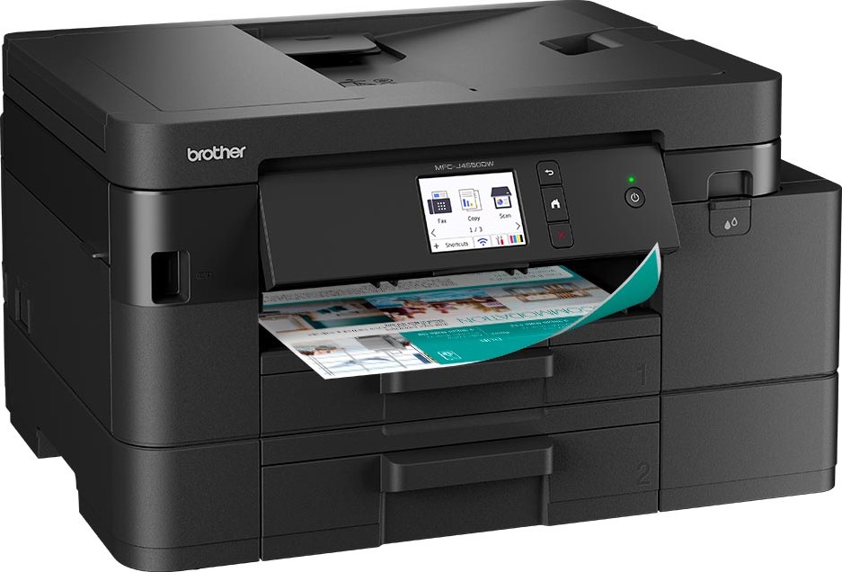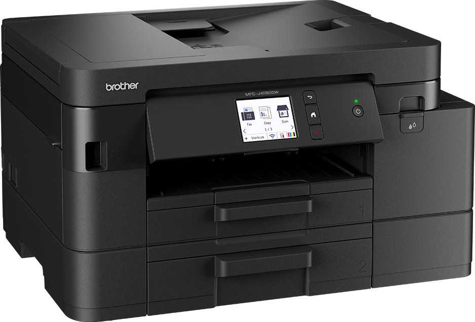 Printer, kopieerapparaat, scanner en fax Afdrukresolutie: 4.800 x 1.200 dpi Afdruksnelheid zwart/wit: 20 ppm Afdruksnelheid kleur: 19 ppm Papierformaat: max. A4 Capaciteit invoerlade: 150 vel Wi-Fi Automatisch recto-verso Inktcartridges: zwart (LC527BK), cyaan (LC527C), magenta (LC527M) en geel (LC527Y)