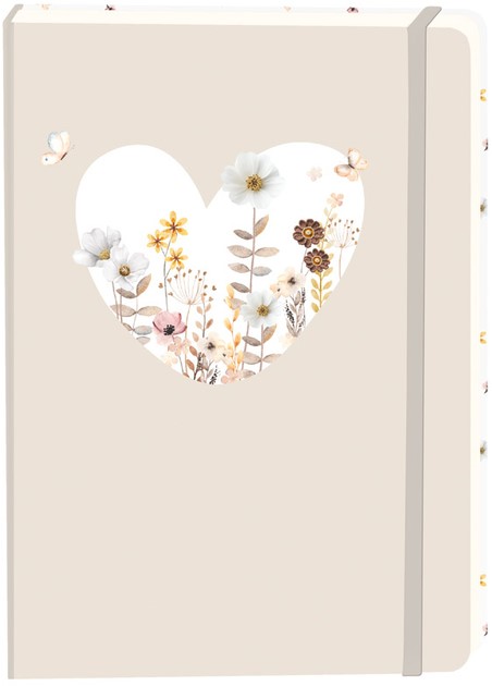 Notitieboek witte bloemen A5 lijn 92 pagina's softcover creme