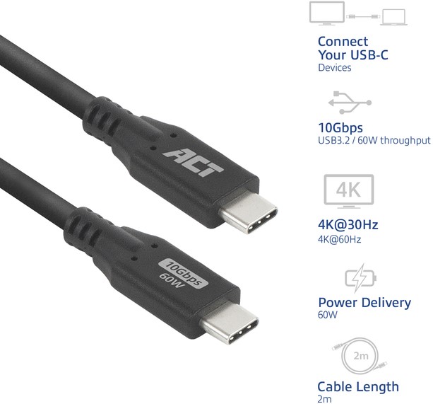 Stel een vraag over Kabel ACT USB-C 3.2 GEN.2 M/M zwart 2 meter