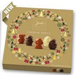 Kleine chocolade figuurtjes met karamelvulling In feestelijke verpakking Doos van 175 g