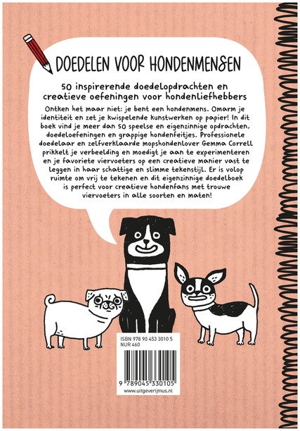 50 inspirerende doedelopdrachten en creatieve oefeningen voor hondenliefhebbers! Ontken het maar niet: je bent een hondenmens. Omarm je identiteit en zet je kwispelende kunstwerken op papier! In dit boek vind je meer dan 50 speelse en eigenzinnige opdrachten, doedeloefeningen en grappige hondenfeitjes. Professionele doedelaar en zelfverklaarde mopshondenlover Gemma Correll prikkelt je verbeelding en moedigt je aan te experimenteren en je favoriete viervoeters op een creatieve manier vast te leggen in haar schattige en slimme tekenstijl. Er is volop ruimte om vrij te tekenen en dit eigenzinnige doedelboek is perfect voor creatieve hondenfans met trouwe viervoeters in alle soorten en maten!