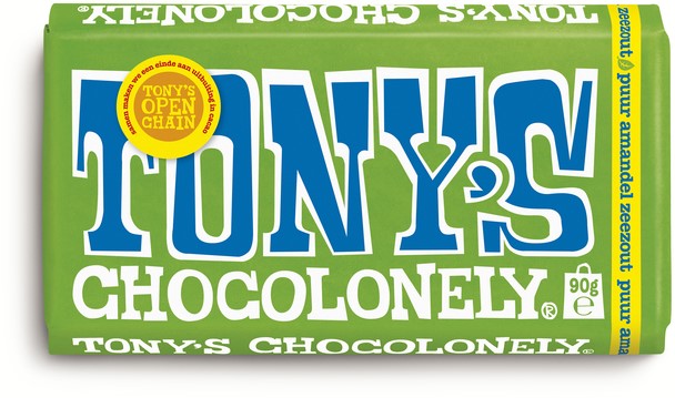 Artikelomschrijving Chocolade Tony's Chocolonely puur amandel zeezout reep 90 gram