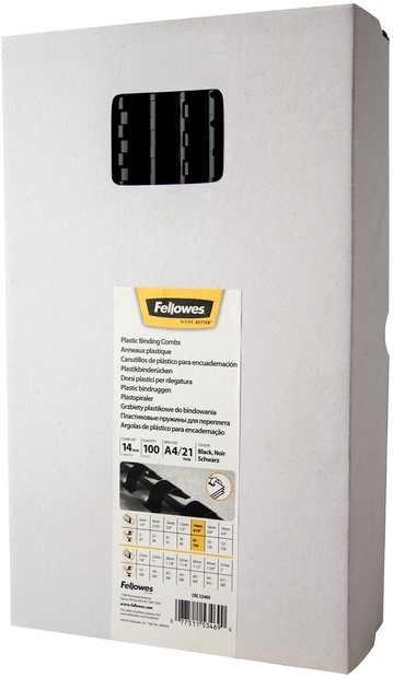 Bindrug Fellowes 16mm 21rings A4 zwart 100 stuks
