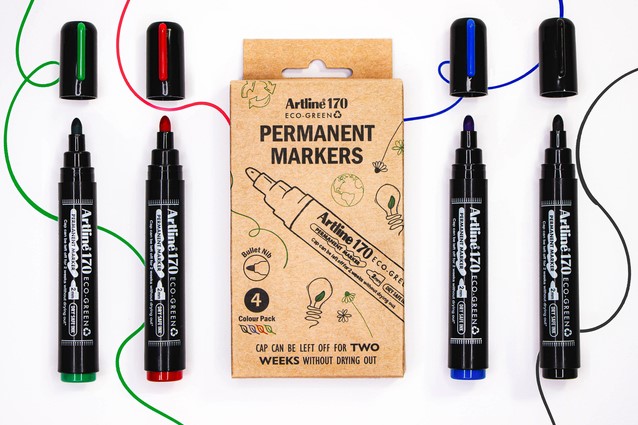 Stel een vraag over Permanent marker Artline 170 Dry Safe Eco rond medium ass 4 stuks