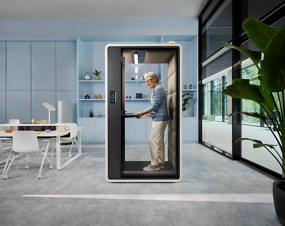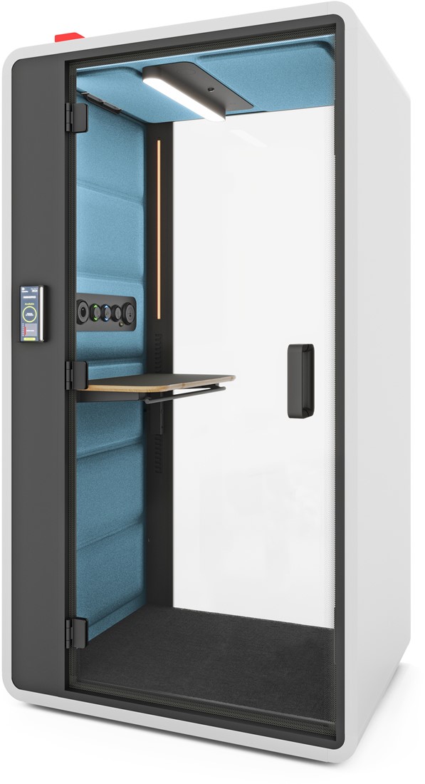 HushFree, dé premium belcel voor op kantoor!De hushFree.S is een luxe belcel voor op kantoor met A-label certificering (ISO 23351-1:2020) en uitstekende geluidsisolatie. Voorzien van hoogwaardige afwerking, ergonomisch zit en sta bureau en perfecte verlichting voor videogesprekken.