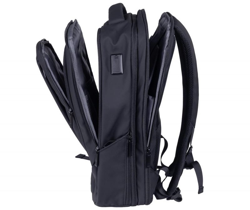 Uit waterbestendig materiaal met filmcoating Voor laptops tot 15,6 inch Inhoud: 16 l Met verborgen vak voor bescherming tegen diefstal Met bagageriem om veilig aan een reiskoffer te bevestigen Met USB-poort en kabel om te verbinden met powerbank Garantie: 5 jaar Ft 29 x 13 x 43 cm (b x d x h) Kleur: zwart