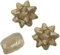 Stel een vraag over Cadeaulint Polyband en 2 rozetten goud glitter