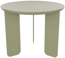 ronde salontafel Ø560 mm met een HPL-blad (25 mm MDF, afgeschuind met een radius van 21 mm, afgeronde onderrand) en een geëmailleerde rand, aangepast aan het RAL-kleurenpalet, passend bij de poten en de kleur van het tafelblad.