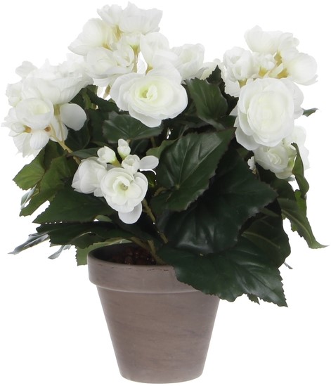 Artikelomschrijving Kunstplant Mica Begonia wit in pot Stan grijs Ø25 30cm