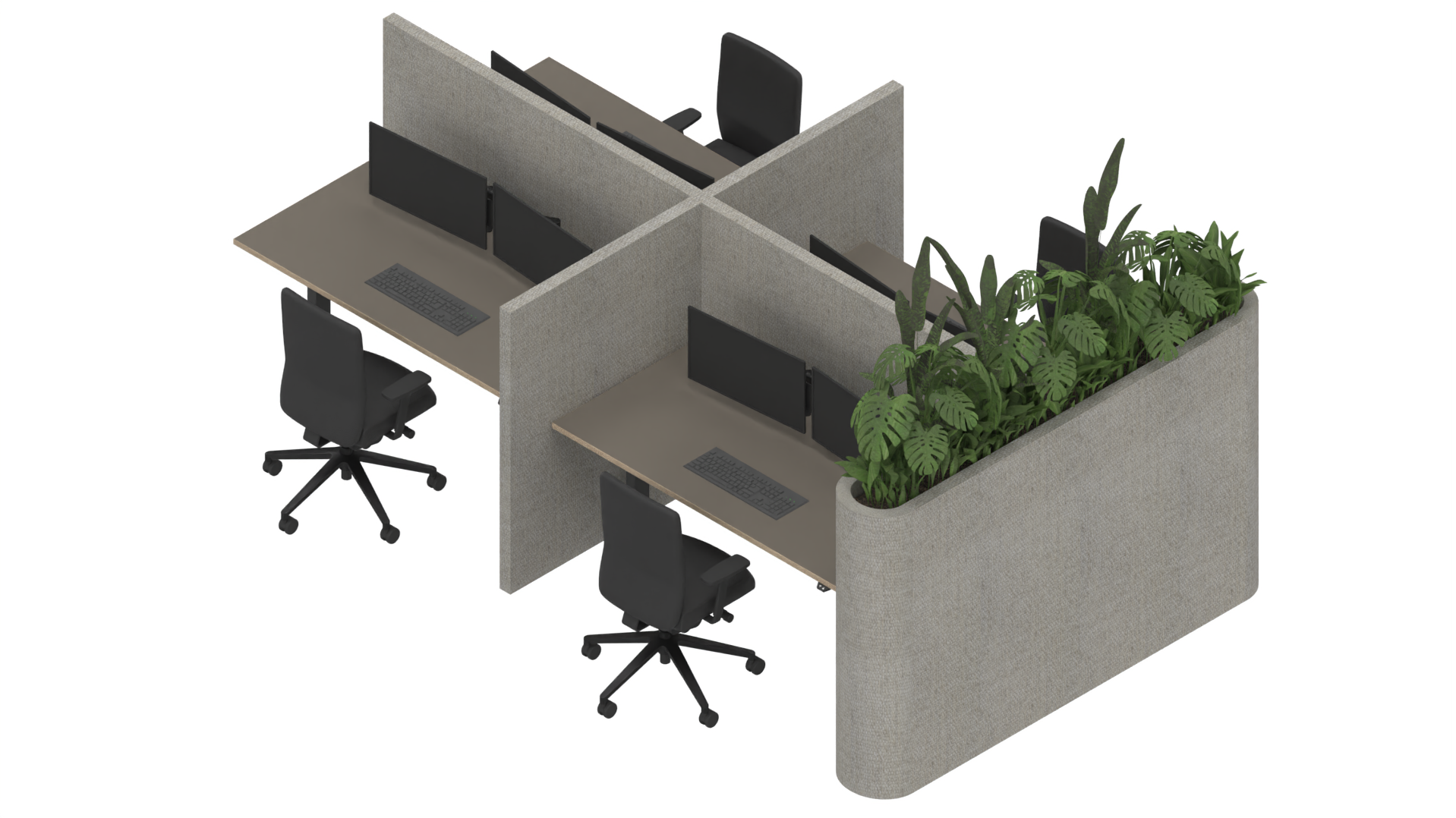Hoogwaardige callcenter werkplek 58mm dikke wanden in X-opstelling 1600x1000 - 1300mm