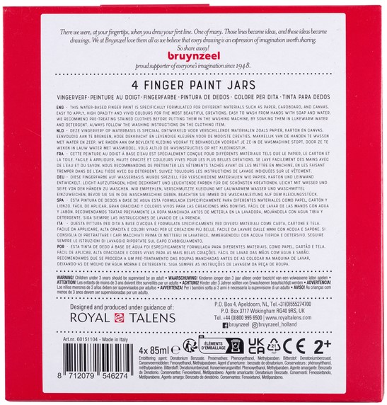 Artikelomschrijving Vingerverf Bruynzeel Kids set à 4 kleuren