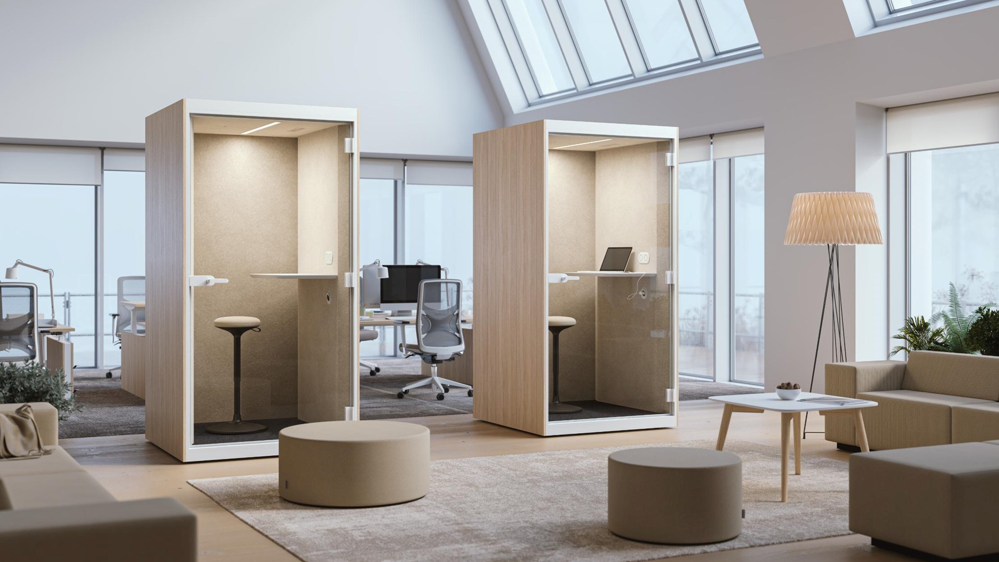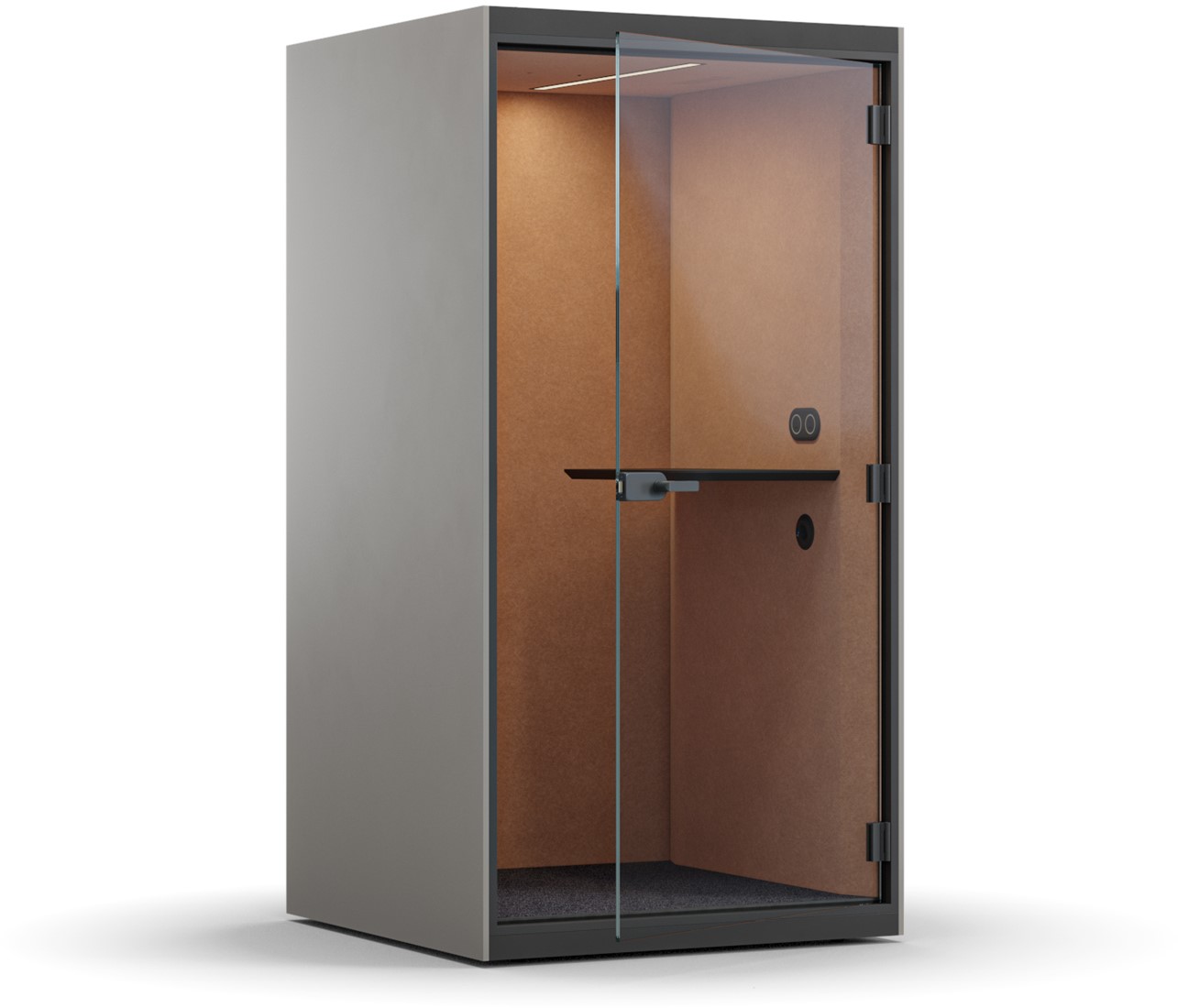 Hoewel de enkele akoestische pod niet bedoeld is voor fulltime werk, is de Sonus S ontworpen om een ergonomische omgeving te bieden. De Sonus S akoestische pod biedt een onbegrensd en ruimer gevoel vergeleken met een traditionele belcel. Het handige bureaublad biedt plaats voor uw laptop en werkbenodigdheden. Een ingebouwd stopcontact eronder stelt u in staat om uw apparaten eenvoudig op te laden, zodat uw gesprek of taak op schema blijft. Het automatische ventilatiesysteem handhaaft de luchtcirculatie voor een optimaal klimaat en de efficiënte verlichting vermindert de belasting van uw ogen, waardoor u productief blijft. De instellingen kunnen indien nodig worden aangepast. U merkt niet eens dat het systeem werkt - geen overbodig geluid, alleen productief werk.