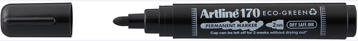Artikelomschrijving Artline permanent marker Drysafe 170 Eco-Green, 2 mm, ronde punt, zwart