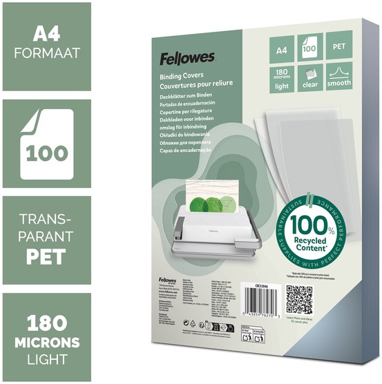 Voorblad Fellowes A4 PET 150micron recycled 100 stuks