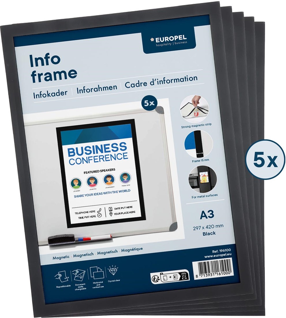 Stel een vraag over Europel magnetisch kader, zwart, ft A3, pak van 5 stuks