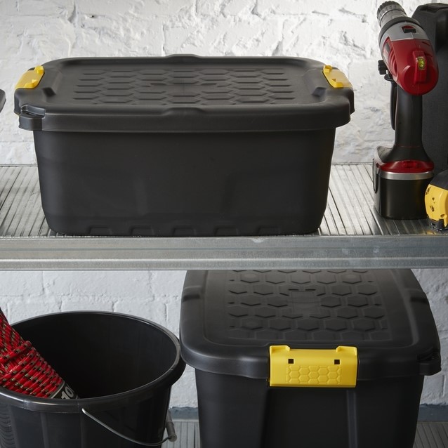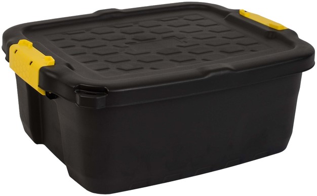 Deze extra sterke opbergbox is ontworpen om zware omstandigheden te weerstaan en moeiteloos zware inhoud te dragen. Dankzij het ingebouwde vergrendelingspunt kun je de inhoud beveiligen met een hangslot voor extra gemoedsrust (hangslot niet inbegrepen). In gebruik stapel je de boxen stevig op elkaar om verticale ruimte optimaal te benutten, en leeg nestelen ze netjes in elkaar om opslagruimte te besparen. Gemaakt van 95% gerecycled plastic en volledig recyclebaar aan het einde van de levensduur: een duurzame keuze voor zowel thuis als professioneel gebruik. Afmeting (hxbxl): 20×40×50cm.