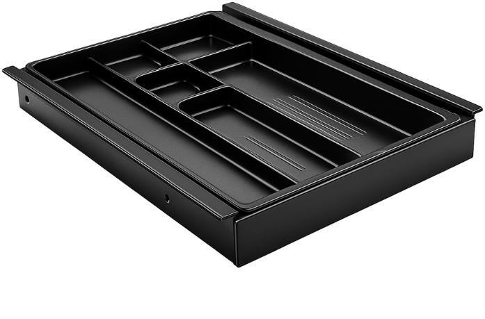 Metalen constructie met verschuifbare organizer voor slimme indeling.