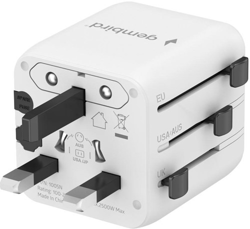 Geschikt voor gebruik in meer dan 200 landen Met US/UK/EU/AU-stekkers Beschermd met 10 A-zekering Kleur: wit