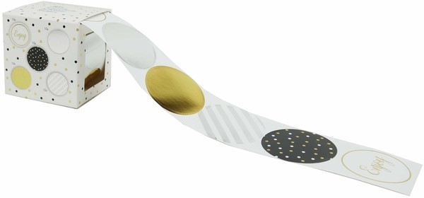 Stel een vraag over Cadeaustickers Party Chique op rol 50 stuks