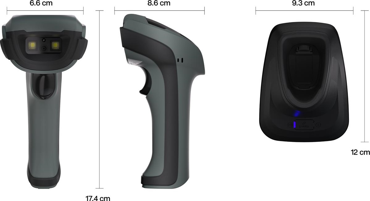 Scant alle barcodes snel en nauwkeurig Leesafstand: 3 tot 35 cm Scansnelheid: 120 fps Handmatige modus: druk op de knop om te scannen Met automatische detectie modus: schakelt automatisch uit wanneer de scanner niet gebruikt wordt Met continue scan modus: de scanner staat continu aan en gaat niet vanzelf uit Plug & Play: sluit direct aan op uw computer, laptop of POS-systeem Water- en stofbestendig (IP54) Aansluiting: Bluetooth 5.0 Draadloos bereik: 100 m Draadloos gebruik: tot 6 uur op een vollebatterij Oplaadtijd: van leeg naar vol in 3 uur Oplaadstation meegeleverd (aansluiting via USB-A,RJ-45 naar USB-A kabel inbegrepen) Compatibel met verschillende platformen (waaronder Windows, MacOS en Linux) en POS-systemen